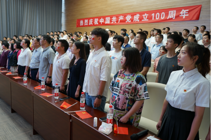 组织全体师生党员集中收看庆祝中国共产党成立100周年大会,并开展“唱红歌,庆华诞”、“写告白,颂党情”、“玩快闪,报党恩”等系列庆祝活动。