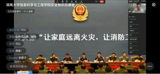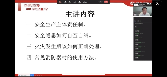 以线上形式开展安全知识云课堂,特邀请湘安消防公益服务中心王松清教官进行授课。