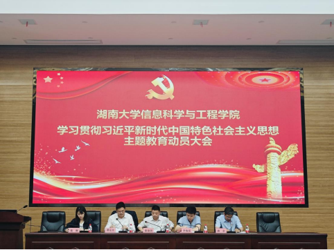 在201报告厅召开学习贯彻习近平新时代中国特色社会主义思想主题教育动员会,深入学习贯彻习近平总书记重要讲话精神,贯彻落实党中央和教育部、湖南省委关于开展主题教育的部署要求,对全院深入开展主题教育工作进行动员和部署。院长唐卓主持会议,院党委书记龚完全作动员报告,学校主题教育第三指导组蔡建国同志、李海滔同志、靳琳同志出席会议,蔡建国代表指导组作指导讲话。学院全体教职工党员、学生党员代表参加动员会。