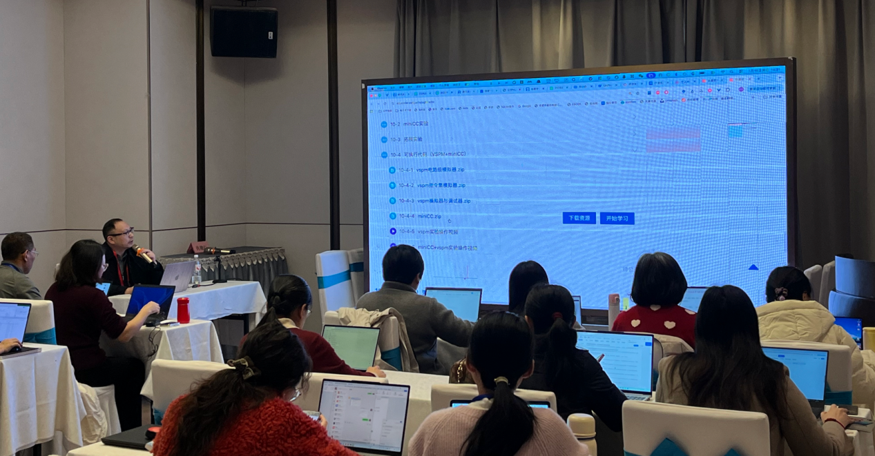 在讲座《计算机系统课程在不同学校的实施思路》中,赵欢教授结合我国高校分层分类发展现状,详解了差异化教学路径:针对不同层次院校的定位与学情,提出模块化内容配置与阶梯式实践体系方案。同时,重点推介了虚拟教研室平台构建的课程共建共享机制与教学帮扶网络,为参训教师后续教改实践提供坚实支撑。