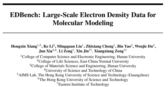 该研究成果以“EDBench: Large-Scale Electron Density Data for Molecular Modeling”为题,被人工智能领域旗舰学术会议NeurIPS 2025(神经信息处理系统大会)接收。