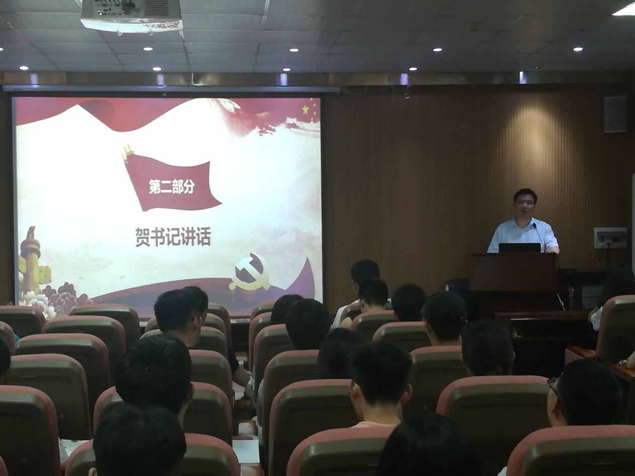 首先,院党委副书记贺迅书记致辞,对所有毕业生党员表示肯定与鼓励,并提出三点希望:第一,希望所有毕业生党员能够在党言党、在党为党、在党爱党,坚持对党忠诚;第二,希望所有毕业生党员能够为学校学院尽一份力,助力学校学院发展;第三,希望所有毕业生党员能够志存高远,励志报国,胸怀天下。贺书记还和所有当场毕业生党员重温了习总书记北大考察重要讲话,要求党员做好表率,做到勤学、修德、明辨、笃实,并与大家分享了尼克·胡哲的书籍——《人生不设限》,鼓励党员同志积极探索人生,将挫折视为成长学习的机会。贺书记在毕业生党员即将离校之际提出了五点具体要求,包括做好“传帮带”工作、协助班长团支书完成毕业相关工作、做好党员寝室挂牌工作、为学弟学妹捐送书籍和做好宿舍清洁工作,要求党员同志做到文明离校,站好最后一班岗。