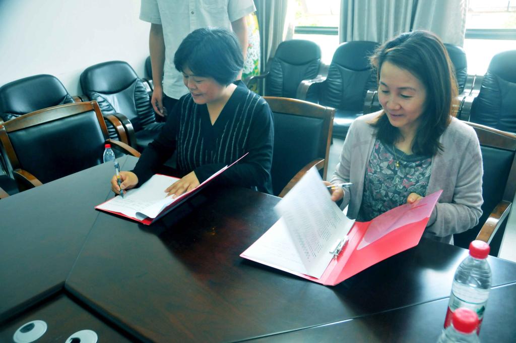 我院林红利副教授与吴芳副总经理在电声智能营销研究中心合作协议书上签字。