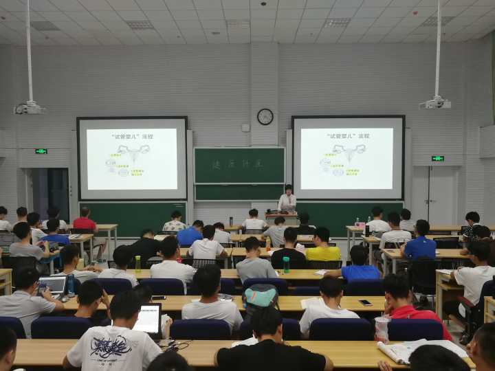 来自中信湘雅生殖与遗传专科医院的黄川医生以中国在奥运赛场上的历史为引,讲述了中国运动员从“东亚病夫”发展到奖牌榜前列的进步过程,引出了今天“健康青春,健康中国”的主题。新时代下的男性健康问题仍然存在,并且形势不容乐观。当代年轻人许多不良的生活习惯都是引发男性生理问题的导火索。黄医生还为同学们展示了技术发展和先进成果,鼓励大家相信科技发展,相信医学。