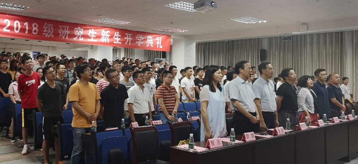 开学典礼在庄严的国歌声中拉开序幕,首先,院党委书记杨忠旺教授为全体研究生新生致欢迎辞。杨书记就如何度过研究生生活、如何做好学术研究提出了宝贵的建议,一是要修身立德,肩负使命,做有为的青年人,二是做好科研规划,做合格的研究生,三是潜心做学术,做创新型人才,希望同学们珍惜学习机会,潜心学术研究,提升素质能力,为将来创造人生、成就事业、服务社会打下坚实的基础。随后,蒋洪波教授作为教师代表上台发言,期望2018级研究生能够仰望星空,脚踏实地,畅游在科学的海洋。接着,老生代表胡星分享了他一年以来在湖大生活、学习、科研的感受与心得,他鼓励大家能够培养自主学习的能力,带着创新的精神和研究发现真理的经验,让自己成为一个优秀的人。方辉同学作为新生代表,表达了对研究生生活的向往,并表示作为新生应该牢记 九色