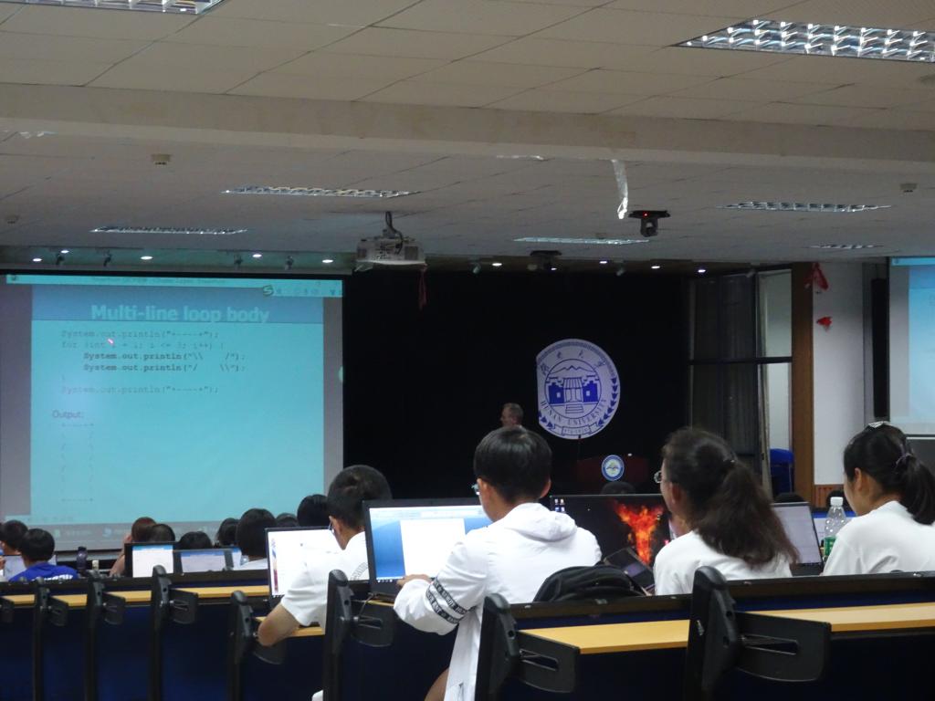 学生感受国际高校第一天的计算机专业本科课程讲座——“使用Java的计算机编程入门课”,分别在南北两个校区,涵盖了文科和理科专业。