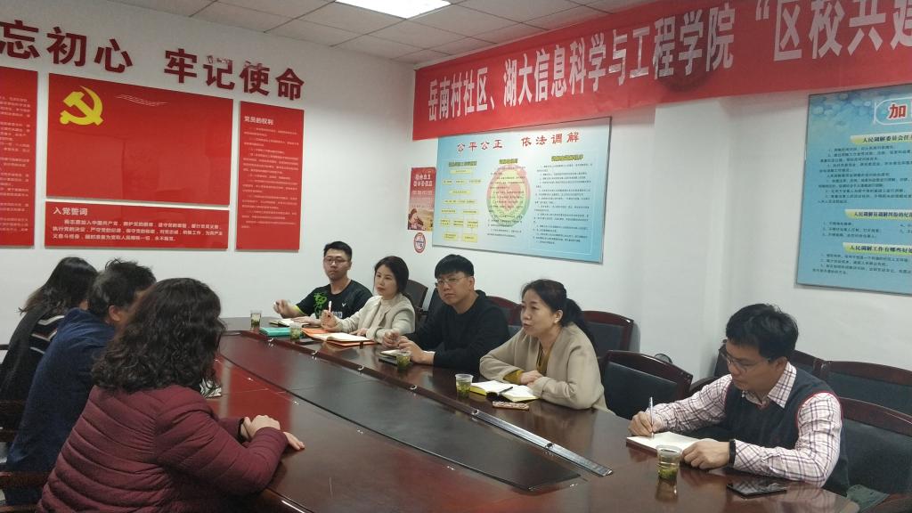 与岳南村社区一起召开“区校共建”交流座谈会,参与此次会议的有 九色