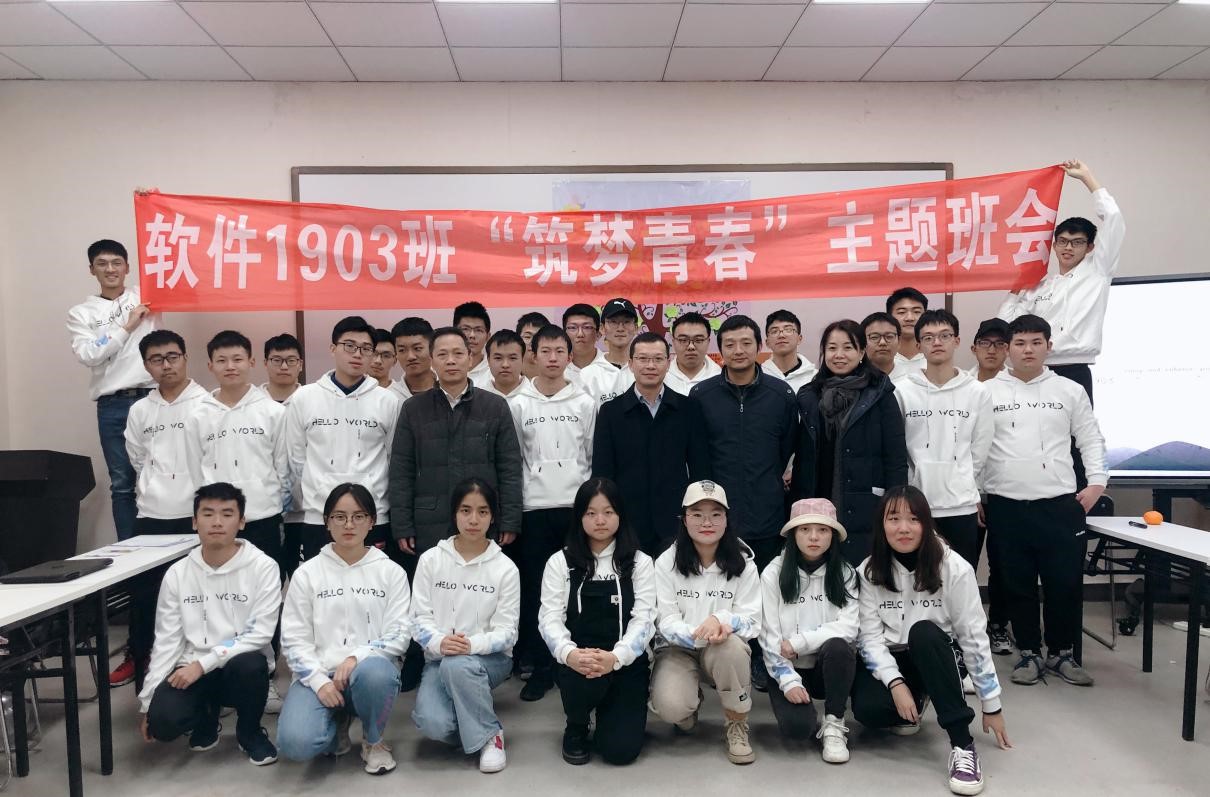 软件工程1903班举行“筑梦青春”主题班会。副校长汪卫斌参加班会,并与同学们亲切交流,帮助同学们增强筑梦信心,拓宽筑梦思路。