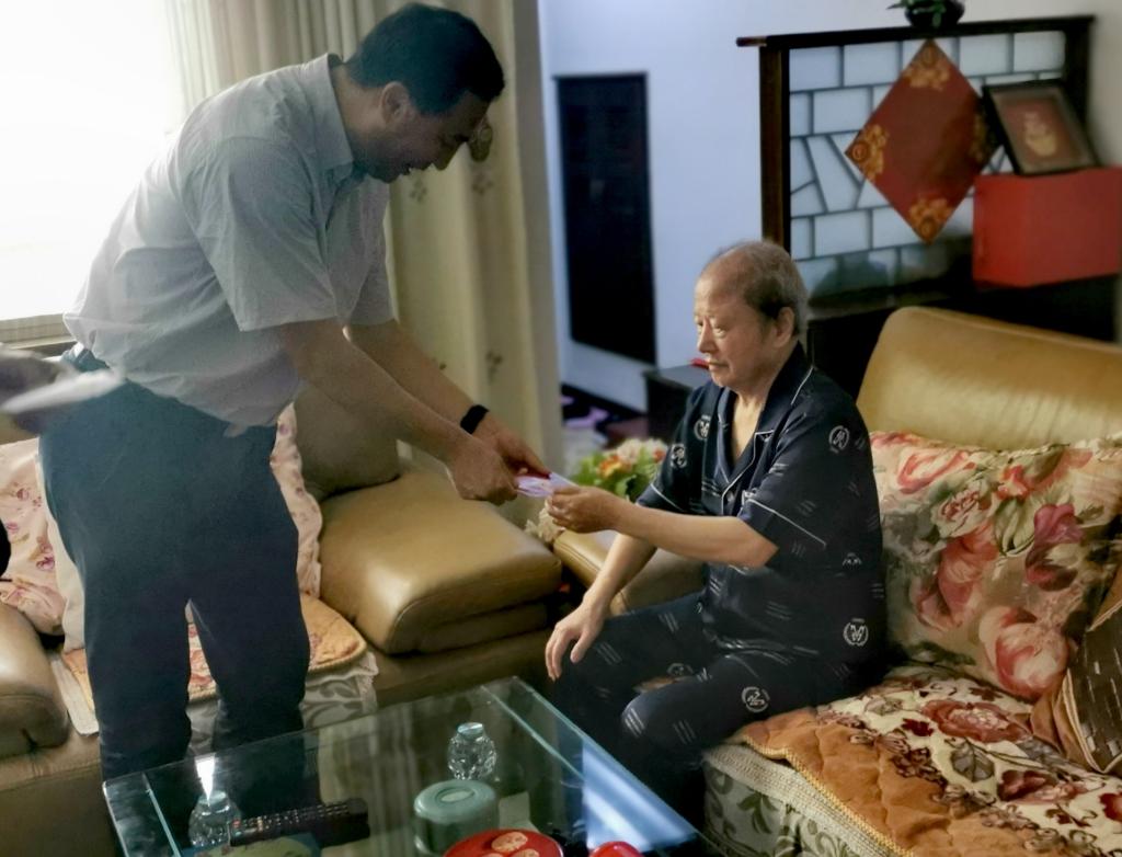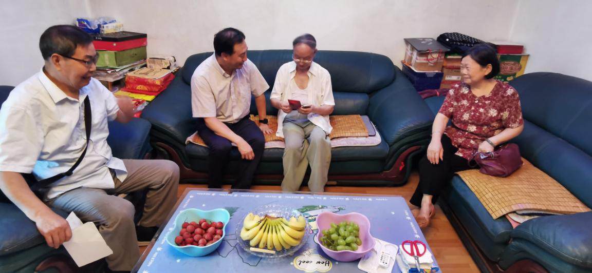 专门走访慰问退休的老党员。学院党委书记杨忠旺、组织员张国田、退休支部书记张柏年、支部委员钱元生、陈宝贤蔡益元一行亲切慰问学院退休老党员钟绍仪、马秀芝、袁鹤龄、张宝林、颜学斌等5名80岁月以上老党员。