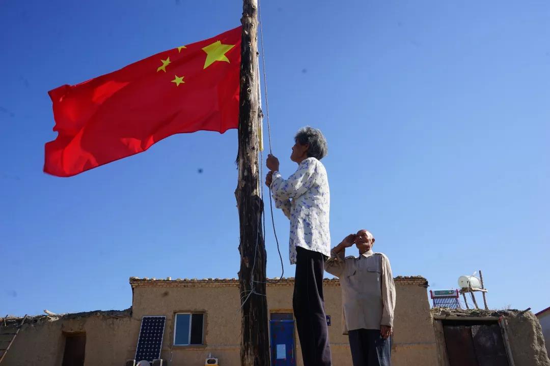 每天早上,魏德友和妻子刘景好起床后的第一件事,就是在家门口升国旗。在屋外的木旗杆前,刘景好拽紧绳索,魏德友奋力挥动右臂,一面鲜艳的五星红旗便迎风展开。每当看到鲜艳的国旗,两个人的心中就会升起一阵自豪感。