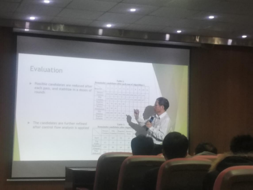 Taiwan National Chiao Tung University, Professor Xie was invited to the Department of Cyberspace Security CSEE as a special guest for three days. One of the event was the “Auto-Constructing Malware Behavior Profilers� report at Hunan University CSEE Room 542.