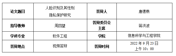 唐德燕博士生答辩公告