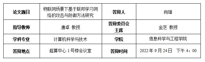 肖雄博士生答辩公告