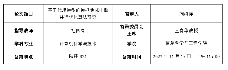 1. Sichun Du, Haiyang Liu, Hongxia Yin, Fei Yu, Jinxin Li. A local surrogate-based parallel optimization for analog circuits, AEU - International Journal of Electronics and Communications, 2021, 134:153667. (SCI,本人二作, 导师一作)