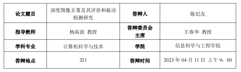 [1] Chen J , Yang G, Xia M, et al. From depth-aware haze generation to real-world haze removal[J]. Neural Computing and Applications, 2022: 1-13 . CCF-C 类期刊,第一作者)
