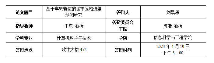 刘晨曦博士生答辩公告