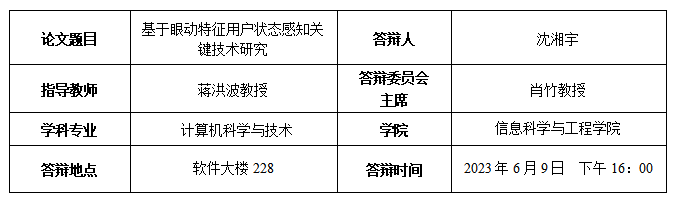 沈湘宇博士生预答辩公告