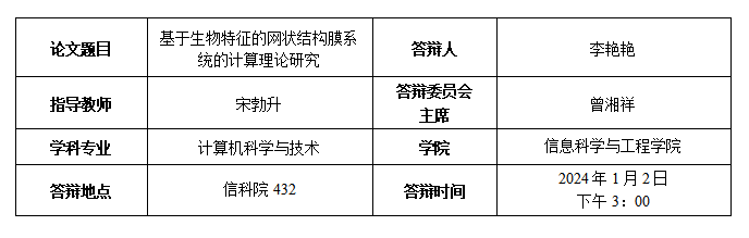3. Yanyan Li, Bosheng Song, Xiangxiang Zeng. Spiking Neural P Systems with Weights and Delays on Synapses[J]. Theoretical Computer Science, 2023, 968: 114028. (第一作者,CCF B类期刊)
