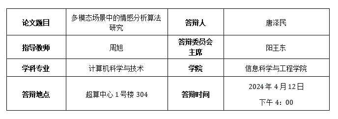 唐泽民博士生预答辩公告