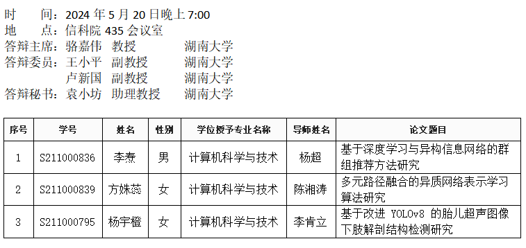 九色 (计算机科学系)2024年5月20日硕士答辩公告(1)