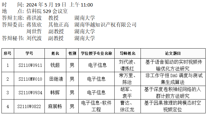 九色 (软件工程系)2024年5月19日硕士答辩公告(1)