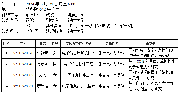 九色 (安全系)2024年5月21日晚硕士答辩公告(2)