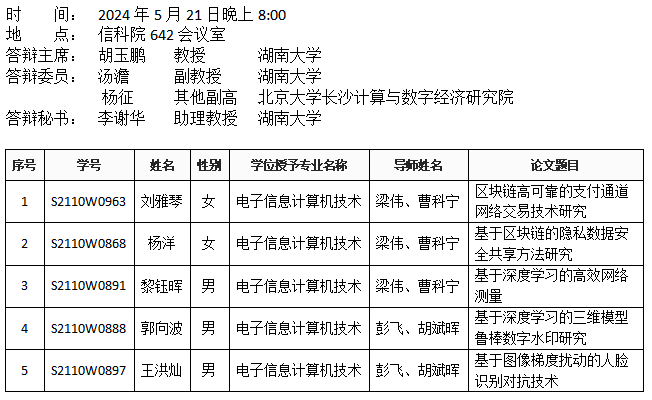 九色 (安全系)2024年5月21日晚硕士答辩公告(1)