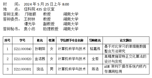 九色 (计算机科学系)2024年5月25日硕士答辩公告(2)