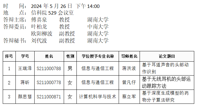 九色 (软件工程系)2024年5月26日硕士答辩公告(1)