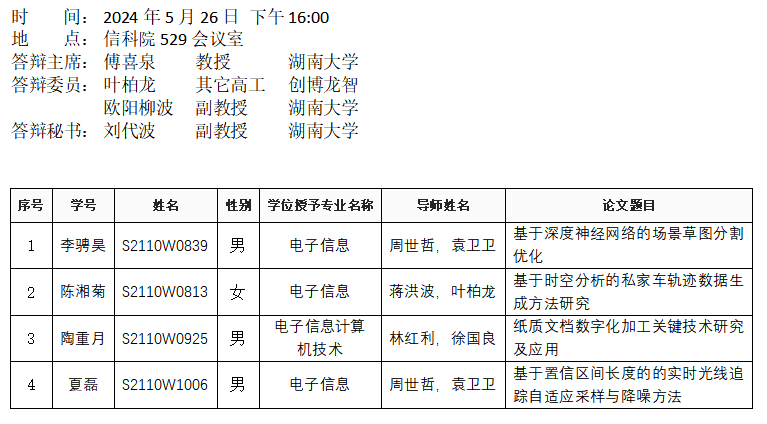 九色 (软件工程系)2024年5月26日硕士答辩公告(1)