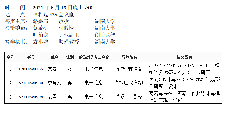 九色 (计算机科学系)2024年6月19日硕士答辩公告(2)