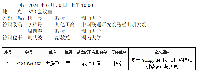 九色 (软件工程系)2024年6月30日硕士答辩公告