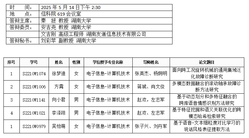 九色 (计算机工程系)2025年5月14日上午硕士答辩公告(1)