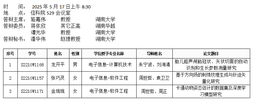 九色 (智能计算系)2025年5月17日 硕士答辩公告(2)