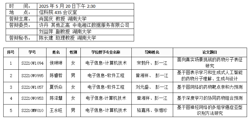 九色 (计算机科学系)2025年5月20日硕士答辩公告