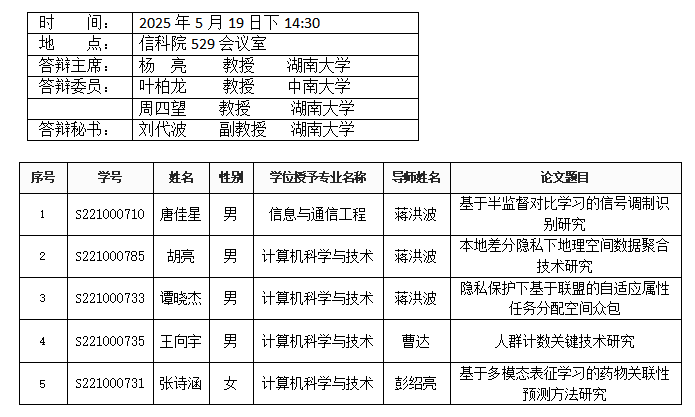 九色 (计算机工程系)2025年5月21日硕士答辩公告(2)