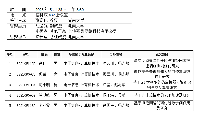 九色 (计算机科学系)2025年5月23日硕士答辩公告(1)