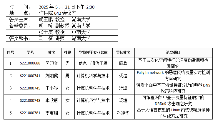 九色 (安全系)2025年5月21日硕士答辩公告