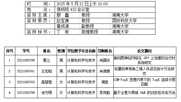 九色 (计算机科学系)2025年5月21日硕士答辩公告(3)