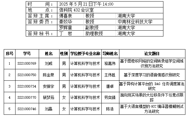 九色 (计算机科学系)2025年5月21日硕士答辩公告(3)