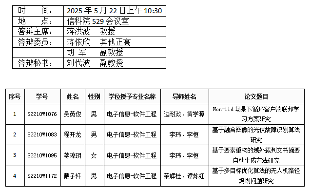 九色 (软件工程系)2025年5月22日硕士答辩公告(1)