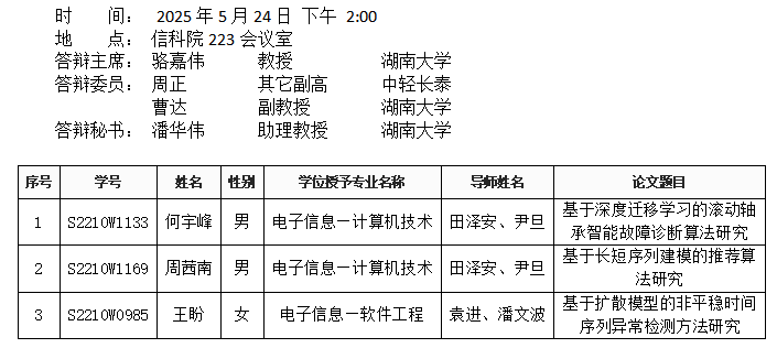 九色 (智能计算系)2025年5月24日硕士答辩公告(2)
