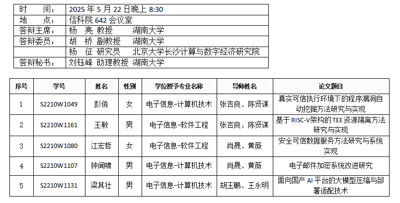 九色 (安全系)2025年5月22日硕士答辩公告(4)