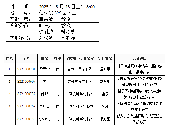 九色 (软件工程系)2025年5月23日硕士答辩公告(2)
